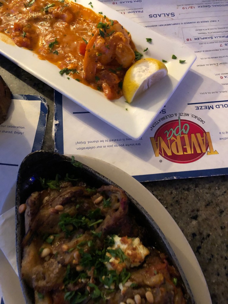 Keftedes, Grilled Haloumi and Tomato, Opa Eggplant, Opa Shrimp