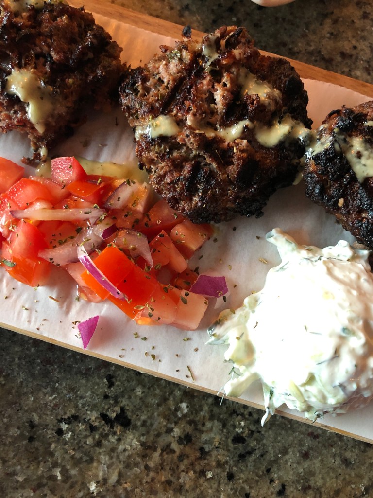The keftedes were grilled. Light patti. Distinct greek flavor. It balances well with the tomato and tzatziki. The tzatziki is a bit strong so go easy when eating this. Good dish if you like beef and lamb. The herbal flavor in the meet is almost smoky.