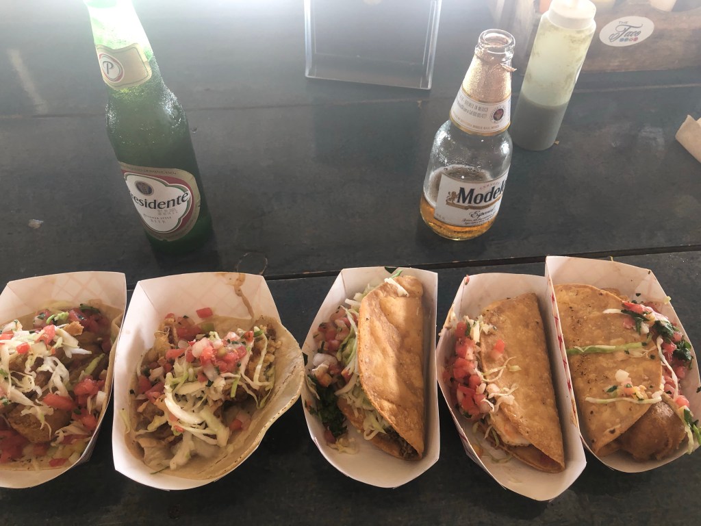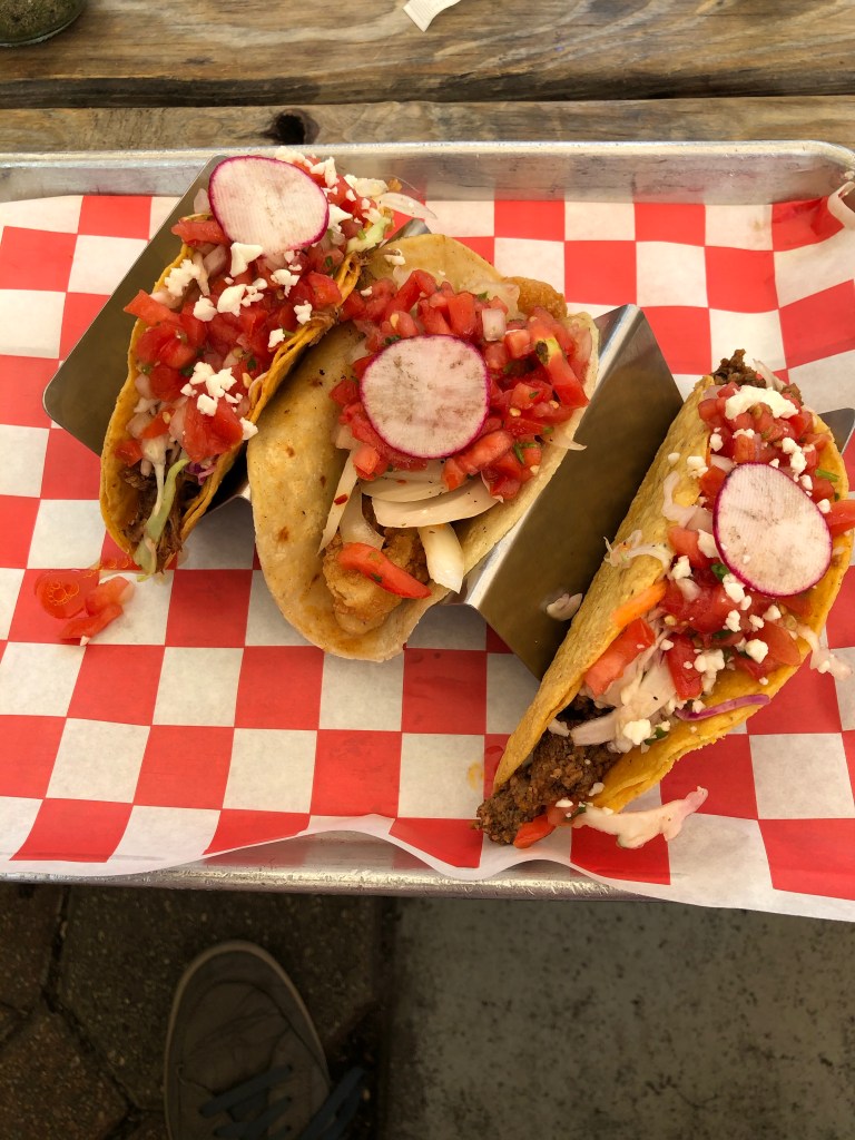 I went for tempura soft crab tacos in a soft corn shell, Baja fish in a soft corn shell, and a traditional ground beef taco in a hard shell. Rebe ordered all shrimp in hard shells, tempura and grilled.